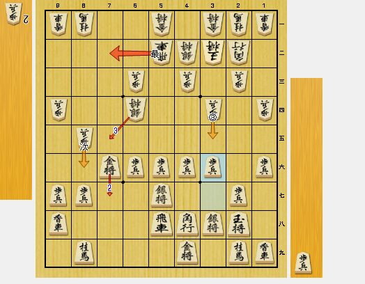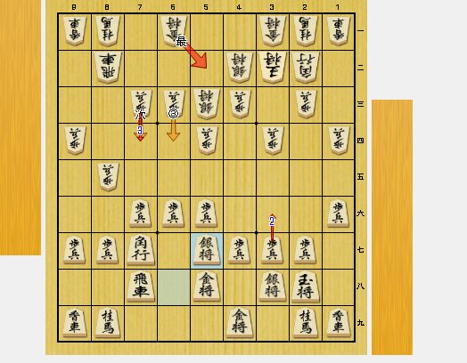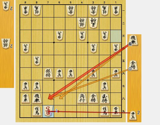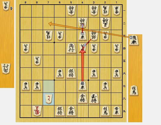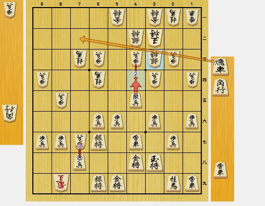 図6で相手の方の4五香打は、緩手でした。4六歩と打って、香を取ることができます。しかし、形勢が不利なのは、変わりません。