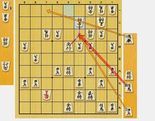 図9は、互角で最後のチャンスでした。4三桂打は見えていたのですが、秒に追われて指せませんでした。