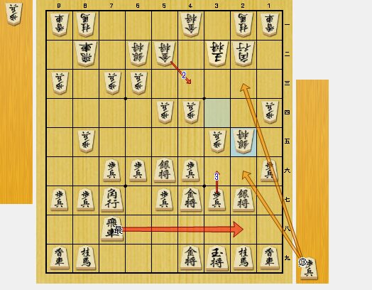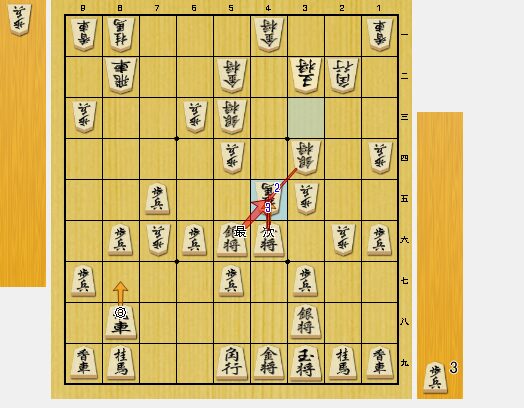 図2では、3五歩を金で取りに行ったところです。しかし、3三桂と跳ねられて、5六銀と引くしかありません。3五銀で、位を確保されてしまいました。