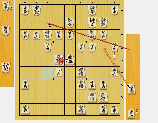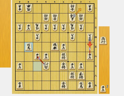 図2では、8三歩とたたくのが最善手でした。同飛車なら、8六角と取って、6一角打が飛車金両取りになります。
