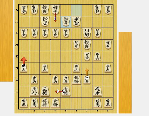図1から、私は7四歩と位の筋の歩を切りにいきました。このままだと桂馬が使えないからです。