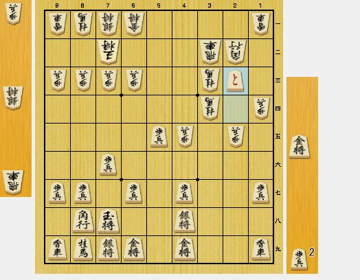 図3では、金銀で玉頭を押さえられてしまい、劣勢です。図3から、相手の方は、7七歩打とされました。同桂で、金銀両取りですが、まだまだ不利です。
