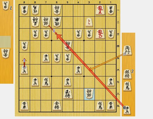 6四角がいるので、3一飛車成とはできません。2四歩からの反撃のチャンスでした。