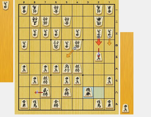 図2で、3八飛車と回ったのは、相手の方に3二飛車と回らせないためです。相手の方は、3三歩と受けてきたのですが、この手は緩手でした。