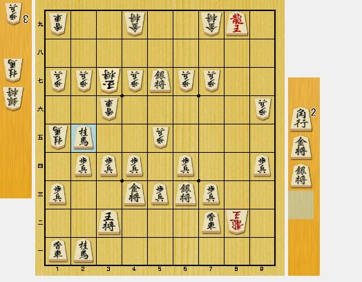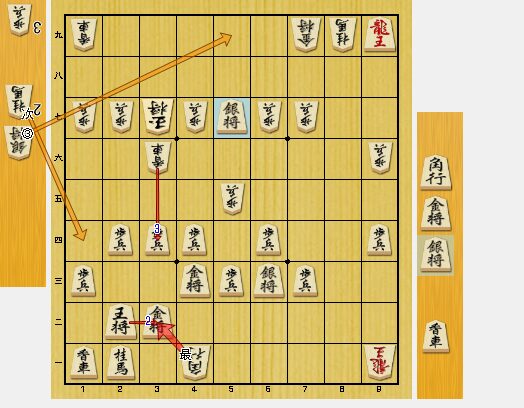 図3で、8九龍と龍を切って、桂馬を取ったのが決め手となりました。桂馬があれば、相手の玉は詰みます。