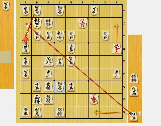 図4では、不利だと思っていたので、9五歩と端にあやを求めました。しかし、この手は疑問手でした。私の端も危なくなるからです。