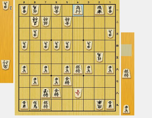4六銀と角に当てた手に対して、同角と角を切ってきました。