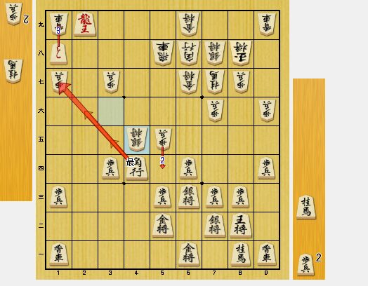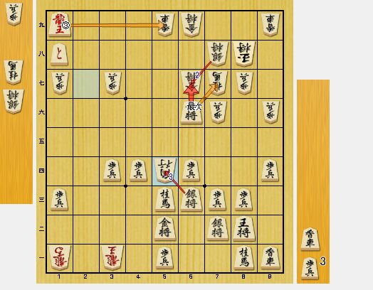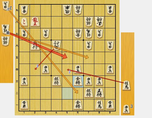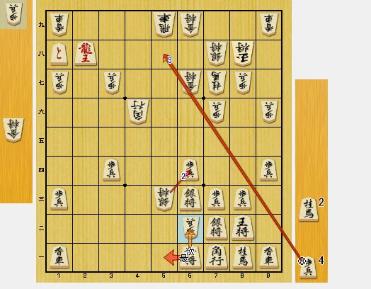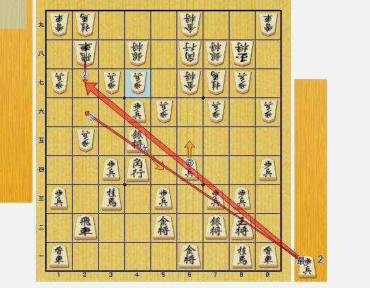 図2では、2七歩・2六歩のたたきの歩から、と金を作ることができるので、必勝だと思っていました。これが、間違いの始まりでした。
