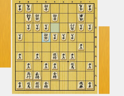 図4で、6四角と出られる手が嫌だったで、4三金と上がりました。しかし、これは、5五桂馬を見逃していた悪手でした。これで、互角に戻りました。