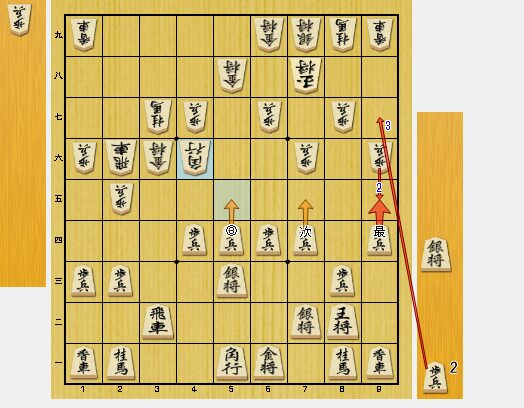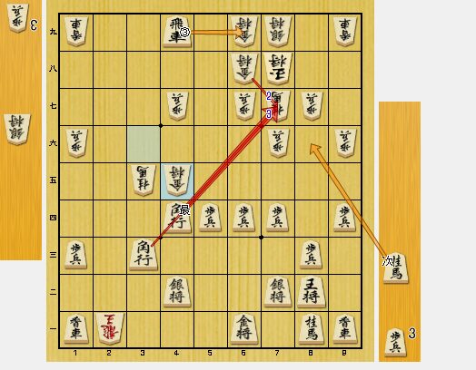 図3で、手が見えなくなりました。最善手は、9五歩の端攻めですが、振り飛車側からの端攻めは、めったに成立しません。考えもしませんでした。
