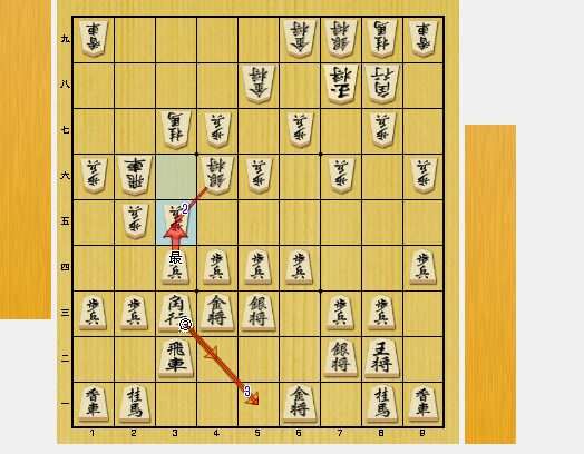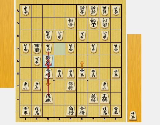 本局は、3四歩・同金・3六歩と進みました。この変化も互角です。
