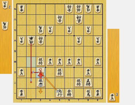 私が指したのは、3四銀でした。3五金と出られる手を防いだのですが、2四歩と突かれる手があるのを見落としていました。互角ですが、相手の方が得をしました。