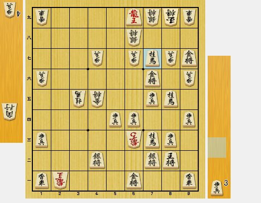 私は、3九龍が見えず、7五歩と突きました。これで、将棋を長引かせてしまいました。