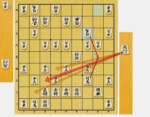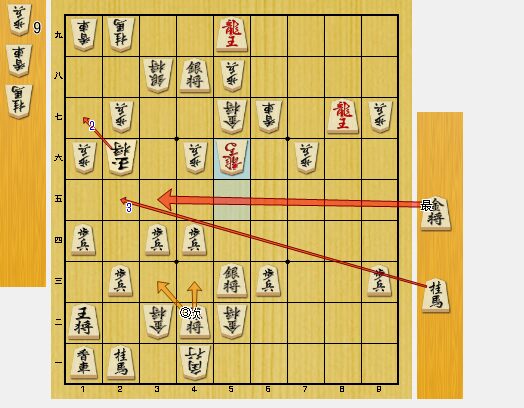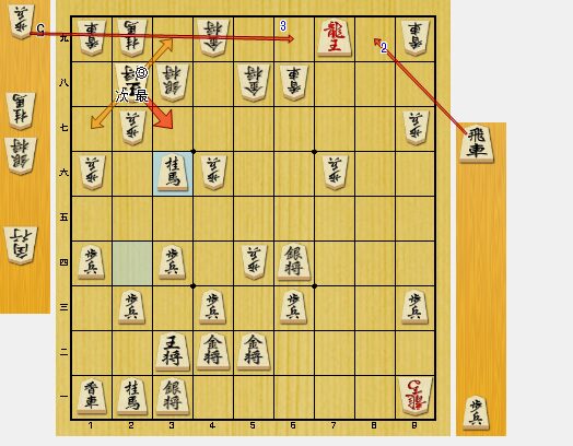 図2では、3三角打が最善でした。しかし、この角打ちを忘れて、2六飛車と走ってしまったのです。