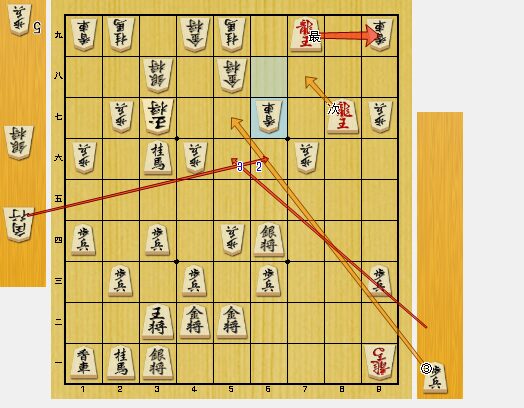 相手の方は、9五角と打ってきたのですが、これにも7六飛車がありました。この手が見えず、8九飛車成として、不利になりました。