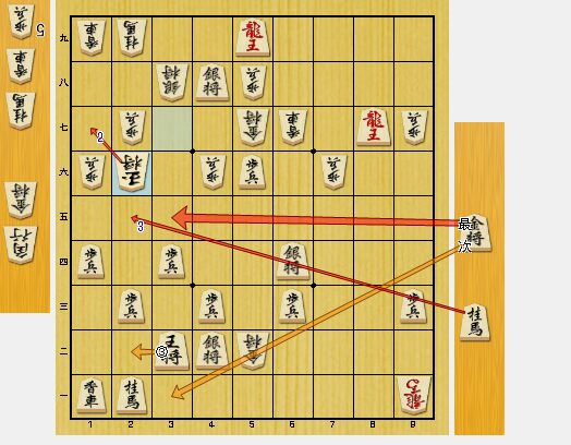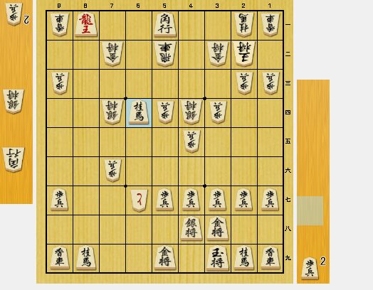 図4では、相手の方が受けてこなかったので、3六桂と王手で跳ねることができました。これで有利になったと思っていたのですが、この後が上手く指せません