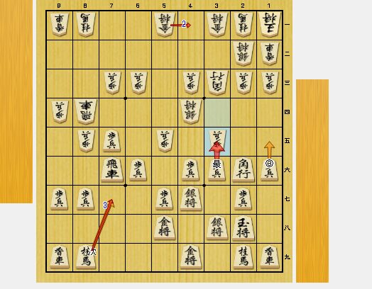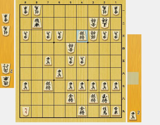 図2では、3三銀打から、ガリガリと攻めることができ、私が有利になっています。しかし、6七角打・3九金・4八歩打に、2二銀成・同玉・6八銀と飛車角両取りをかけた手が悪手でした。