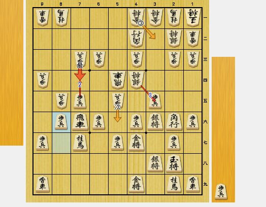 図2の8六歩は、悪手でした。同歩なら同飛車から、飛車をさばこうという狙いなのですが、7四歩と突かれて困りました。
