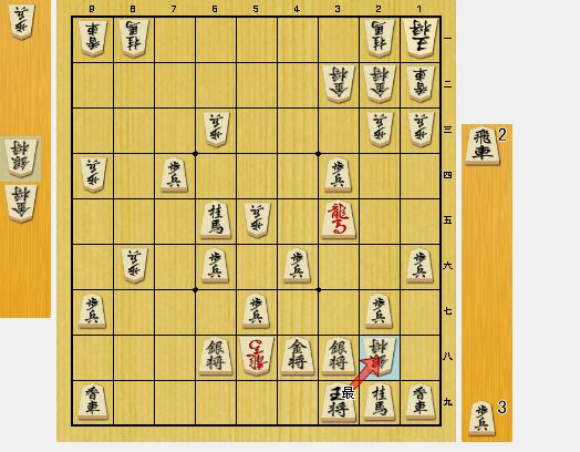 3九飛車成と切られて、私が不利になりました。