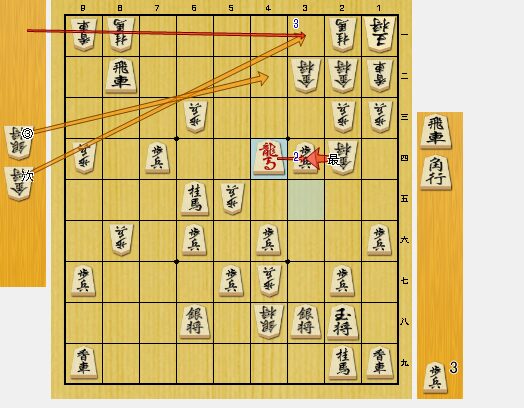 8七飛車成には7六角で龍を追い返す