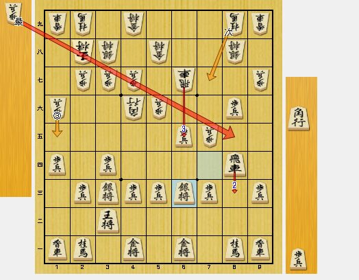私は、7九銀と逃げたため、5六角成とされて、相手の攻めが速くなってしまいました。