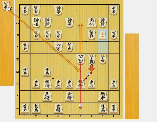 図6で、相手の方が指された8四角は悪手でした。私は、5三と金と指し、勝負になった感じがしました。