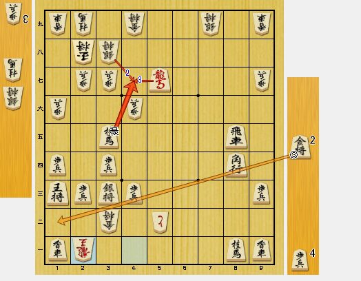 しかし、相手の方が、4一同金と取ってきたので、同龍で、私が優勢になりました。