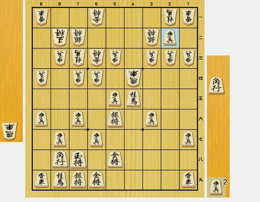 相手の方のプロフィールには、純粋居飛車党とありました。戦型は、図1の引き角戦法でした。しかし、序盤を工夫されていて、すぐには引き角と気づきませんでした。