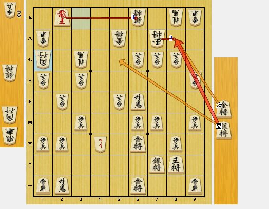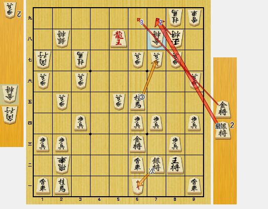 7七龍以下、9七玉・8五桂・9八玉・8八金で、相手の玉を詰ませて勝つことができました。今回は、序盤・中盤・終盤のすべてで疑問手・悪手がありました。