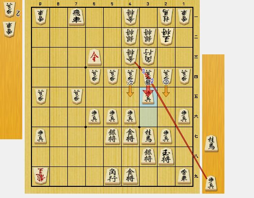 図3の2五金は、相手の方の悪手でした。同桂と取ることができます。しかも、3六桂の両取りもかけられます。