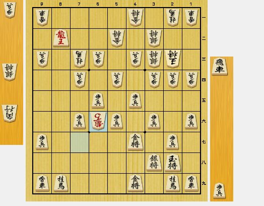 しかし、相手の方が6六龍と打開してきました。この手が悪手でした。6七歩で龍を追い返せるからです。