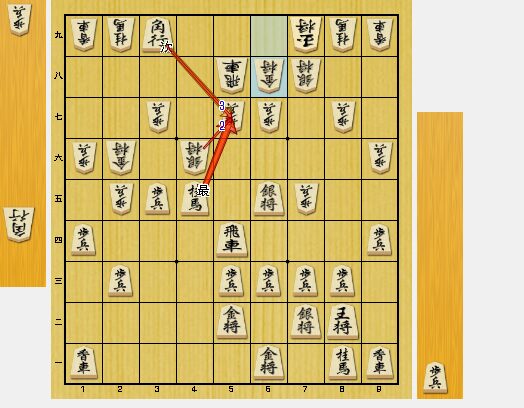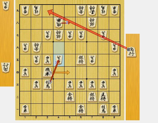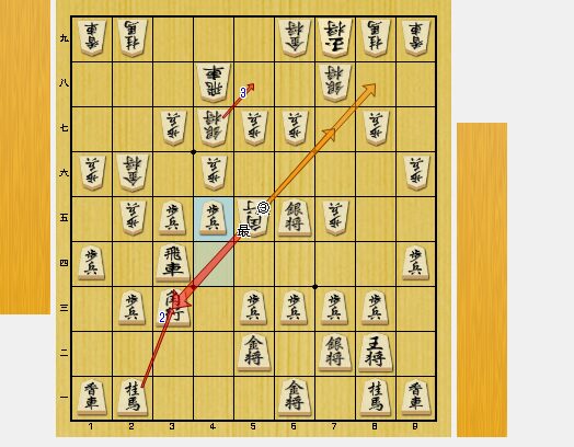 相手の方は、3五金と逃げましたが、4八角成が激痛でした。