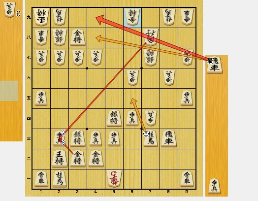 図2で、4八金打と指して、飛車を捕獲することができました。同飛車・同金であとは寄せるだけです。