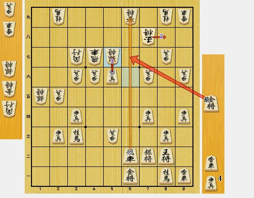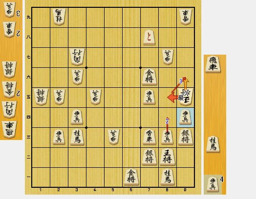 図2で、指し手に迷いました。いつもは、2三歩と受けることはしないのですが、無難に指そうという気持ちが強く、2三歩と受けてしまいました。