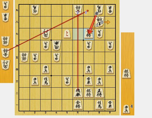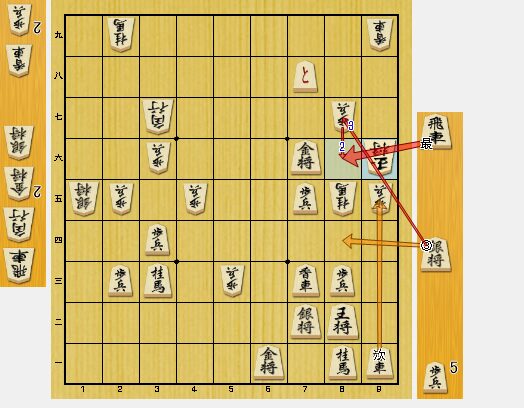 9六歩と取れば、11手詰めでした。しかし、7七金と寄ってから、8四銀と打って、安全勝ちを目指しました。