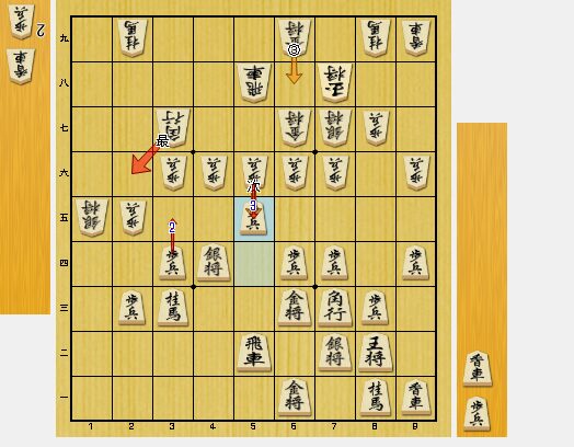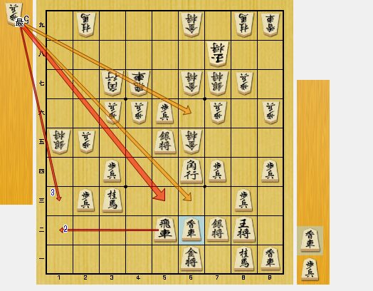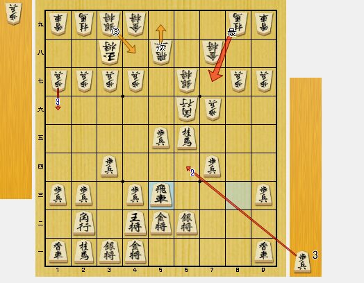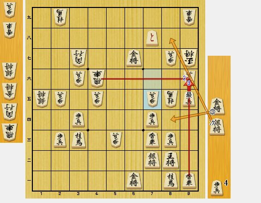 相手の方は、端で香を交換してこられました。私は、端の銀を相手にせずに中央で戦う構想です。これで、私が有利になりました。