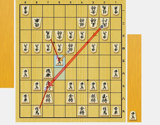 図2で、指し手に悩みました。6五歩は、強引に角をさばこうという狙いです。ここでは、普通に角交換・桂交換をするのが最善でした。