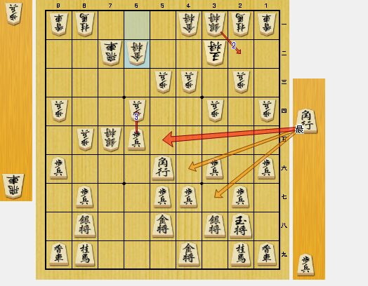 相手の方は、この手を見落としていたらしく、4六角と切ってきました。これで、差が縮まりました。