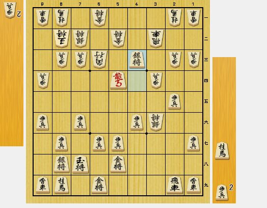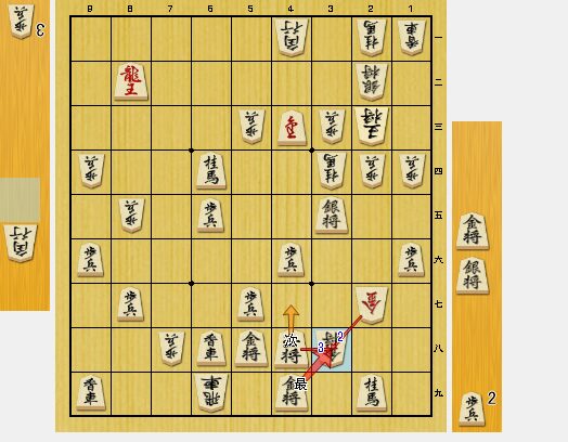 でも、この手が見えなかった私は、3六銀と桂馬を取りました。これで、龍を取られて、敗勢になりました。