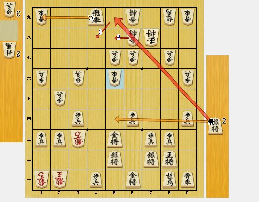 図3では、一方的に攻めらて、こちらからの攻めが間に合いません。同金とは取れないので、同角・同桂成・同金と我慢しましたが、2枚の角で攻められると私の玉は持ちません。