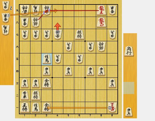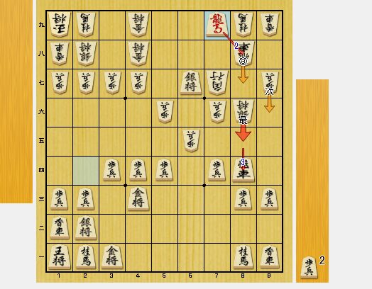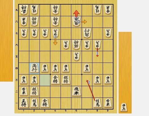 図2では、7九角成と馬を作ることができ、優勢です。ここで、相手の方が6六角と飛車取りにしたのが悪手で、8八馬・8四角・同歩で、私の角得になりました。