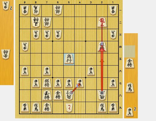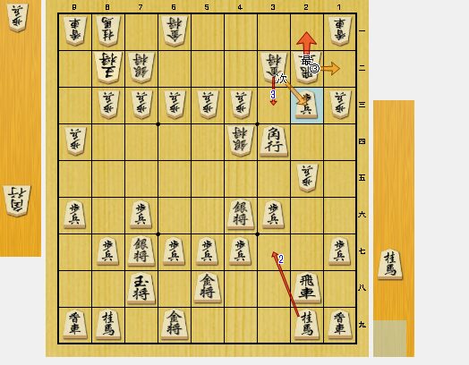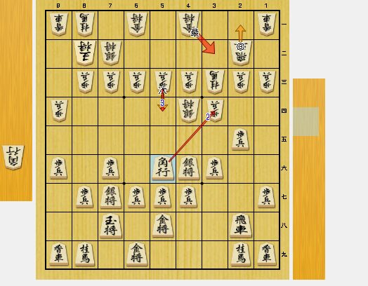 たまにある筋で、飛車先の逆襲が狙いです。しかし、この場合は、角で歩を取れてしまうので、私が有利になりました。