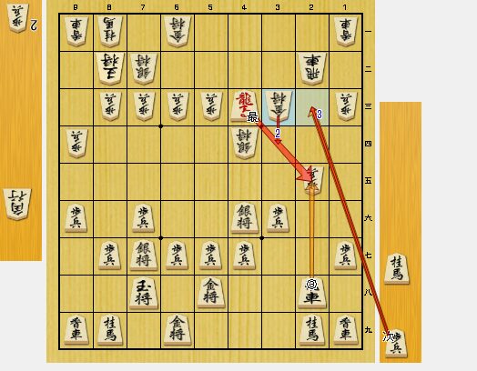 狙いは、3四の歩を取るのが直接の狙いです。これが意外と受けにくいのです。図1で、相手の方は、2五桂馬と桂捨て作戦を実行されました。
