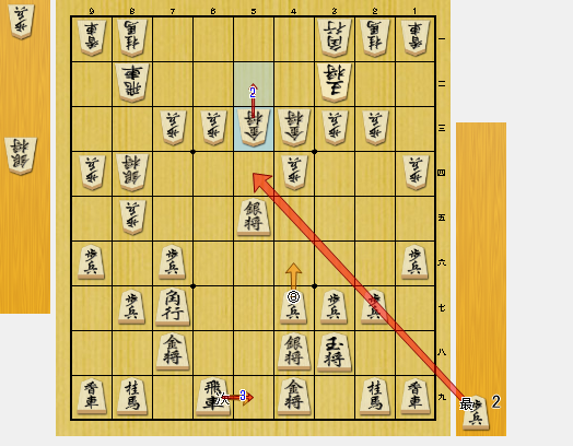 図2の5三金上は、相手の方の悪手でした。5四歩に同金と取れません。同金・同銀・同金に6三飛車成と飛車を成りこめるからです。これで、私が有利になりました。