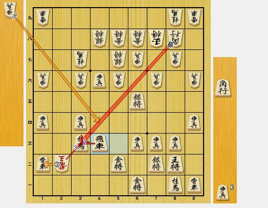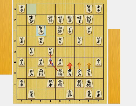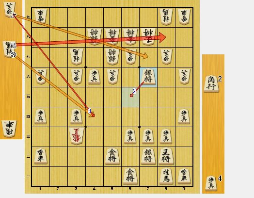 図2では、4四銀と出るのが正着でした。私は、4三飛車と受けたのですが、これで、不利になりました。