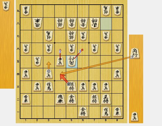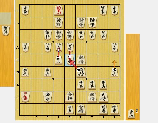 しかも、図1からは6四歩と待つのが最善でした。私は、4五歩と取ってしまったのです。まだ、互角ですが厳しい戦いとなりました。