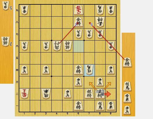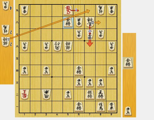 図76一香打が、相手の悪手でした。金を引いて受けるのが正着でした。これで、互角に戻りました。