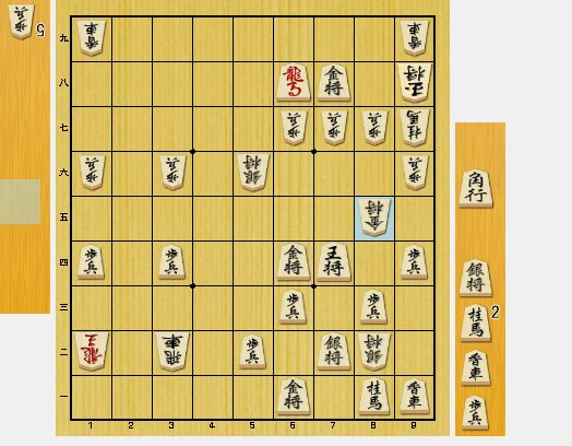 図5では、5五角と切るしかありません。これで、劣勢が敗勢になりました。もはや、負けを覚悟しました。