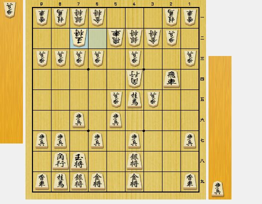 図47六銀と歩を取った手も疑問手でした。7七歩と受けられると角を打つ筋を消されてしまいます。これで、不利が劣勢になりました。