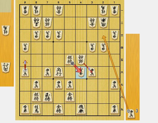 図3で、4四角とさばきに行ったのも悪手でした。ここは、4四歩と取り込み、4三歩成を狙うべきでした。飛車を成りこまれて、桂馬を取られて、不利が拡大しました。